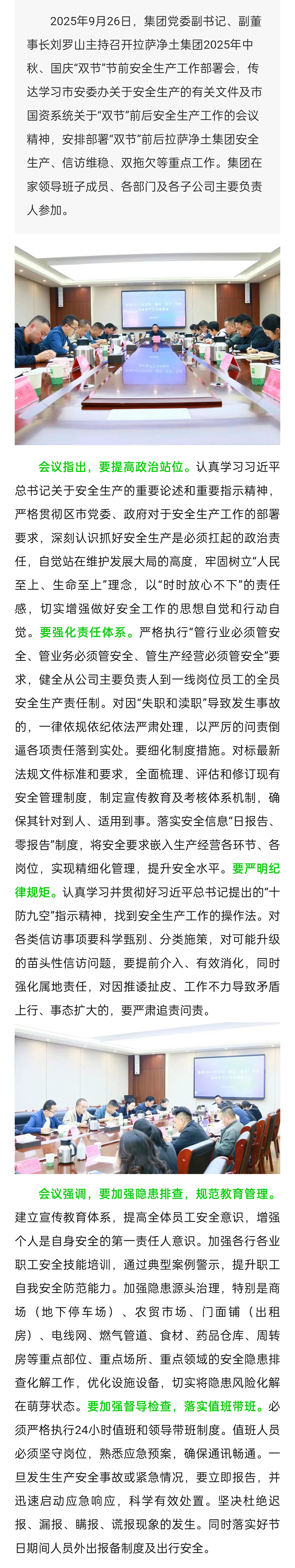 筑牢安全防線 護航雙節(jié)祥和(拉薩凈土集團召開2025年中秋、國慶“雙節(jié)”節(jié)前安全生產(chǎn)工作部署會)